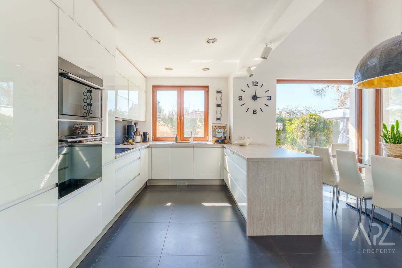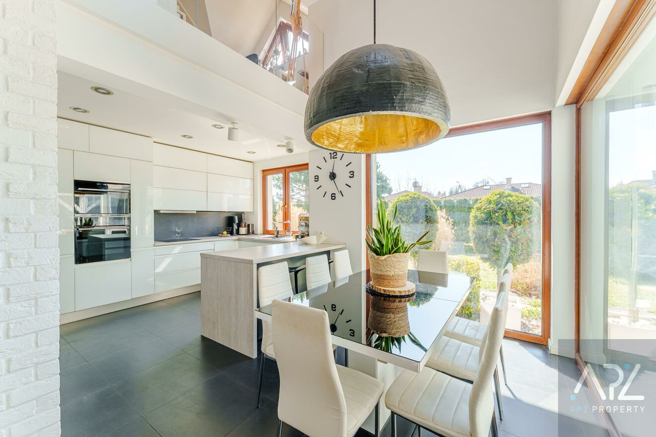 Dom o łącznej powierzchni użytkowej 219 m2 z garażem dwustanowiskowym, zlokalizowany na działce o powierzchni 809 m2, wybudowany został w 2010 roku z wysokiej jakości materiałów i urządzony w eleganckim i przyjemnym stylu.