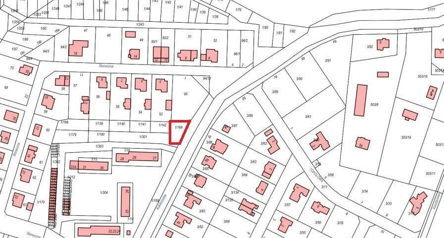 Działka o regularnych kształtach zbliżonych do prostokąta , ogrodzona i zagospodarowana